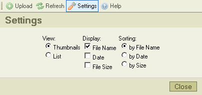The "Settings" button, in the toolbar, opens the "Settings Pane", where you can configure and customize CKFinder. Here is a screenshot of it: