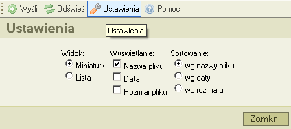 W celu zamknięcia okienka z ustawieniami, kliknij przycisk "Zamknij" albo kliknij ponownie w przycisk "Ustawienia" w pasku narzędzi.